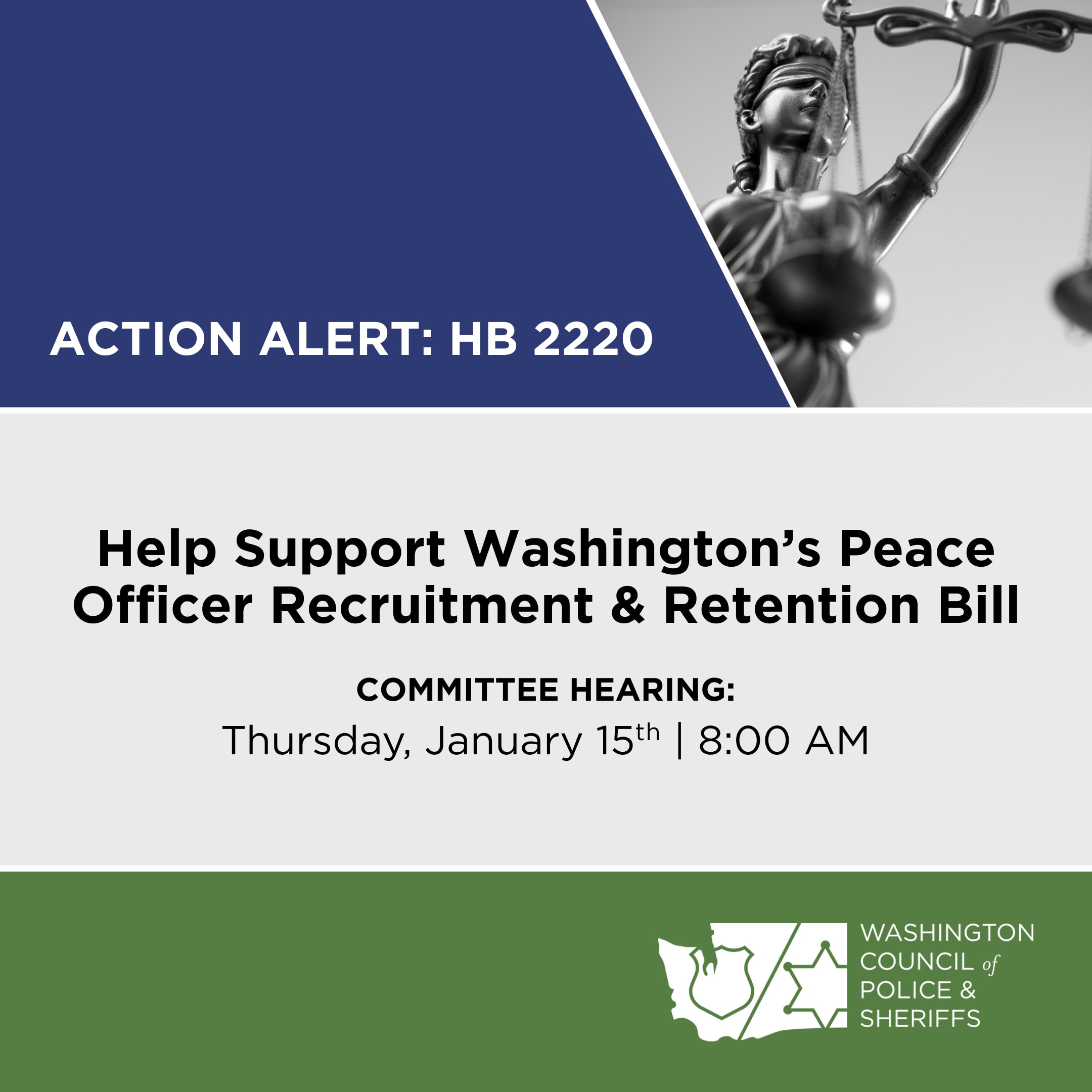 On Friday, WACOPS announced the introduction of HB 2220, a no-cost recruitment and retention bill aimed at addressing Washington’s historic law enforcement staffing crisis by improving objectivity and consistency in the state’s peace officer certification system. The bill has been introduced and is scheduled for a public hearing on Thursday, January 15 at 8:00 AM in the House Public Safety Committee. Now is the time to sign in PRO.
