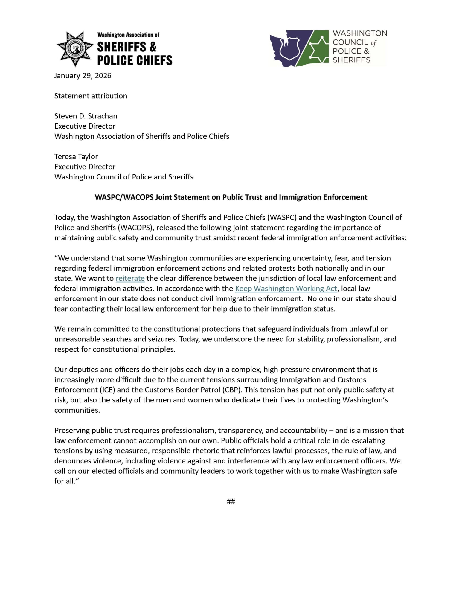 WASPC/WACOPS Joint Statement on Public Trust and Immigration Enforcement